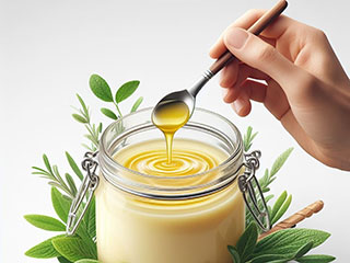 Ghee is prepared by simmering butter, which is churned from cream, and removing the liquid residue. The texture, colour, and taste of ghee depends on the quality of the butter, source of the milk used in the process and the duration of the boiling.