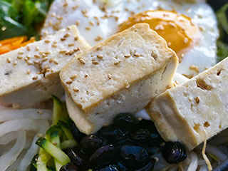 Tempeh is a soybean cake that is made from hulled soya beans soaking, cooking and fermentation fungus.